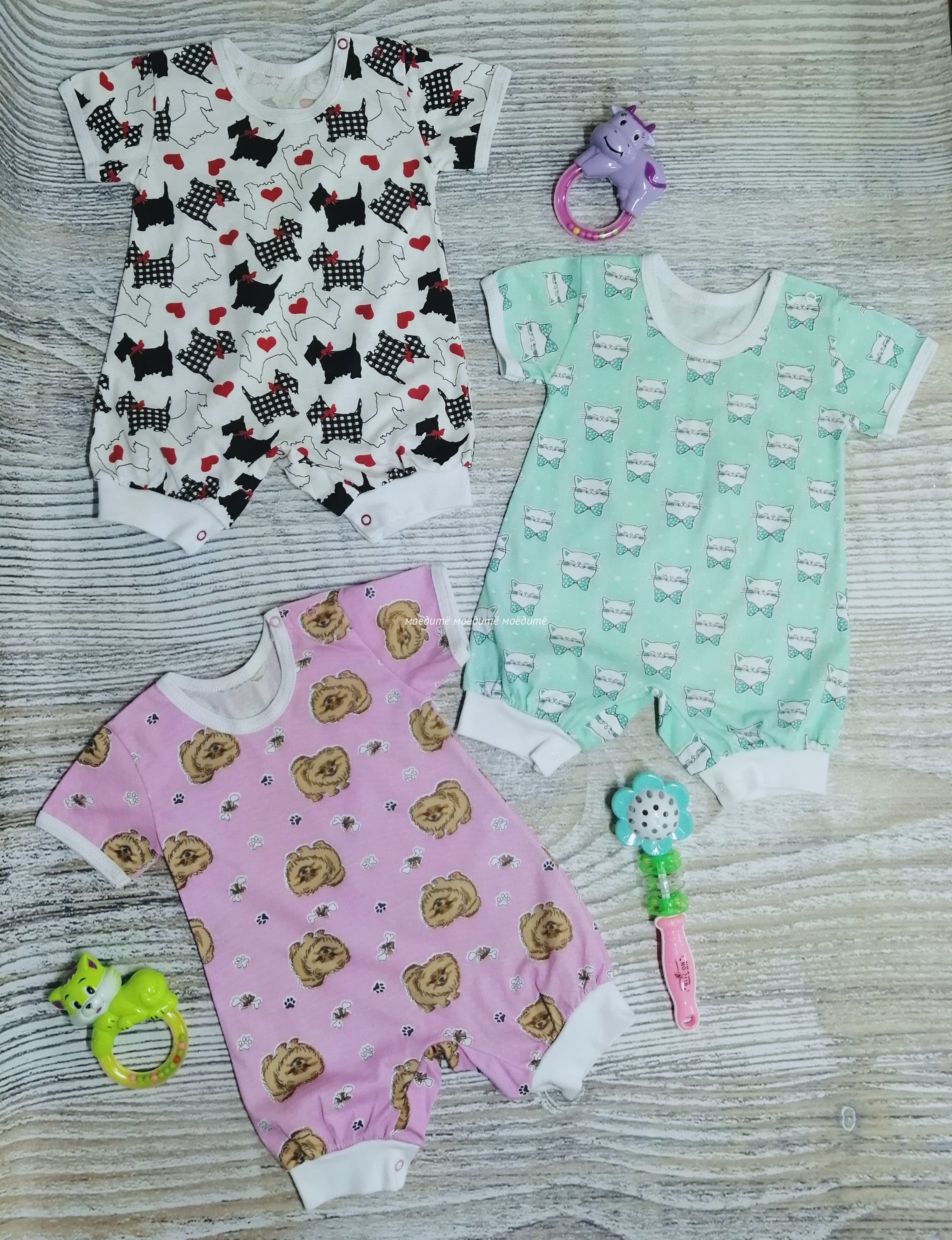 Песочник с коротким рукавом, с кнопочками на одном плече и между ножек.