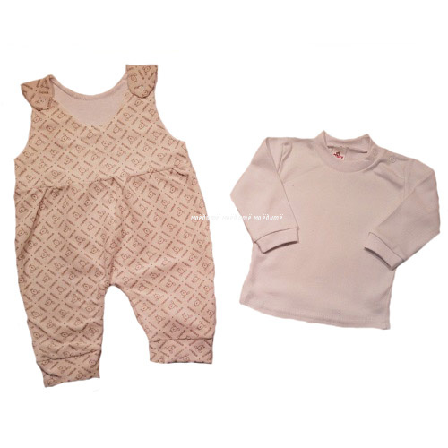 Комплект состоит из 100% хлопка, полукомбинезон из материала "кристалл" с подкладкой интерлок, с открытыми ножками на манжете, с кнопочками на плечиках. Кофточка с кнопочками на одном плече, с рукавами на манжете.