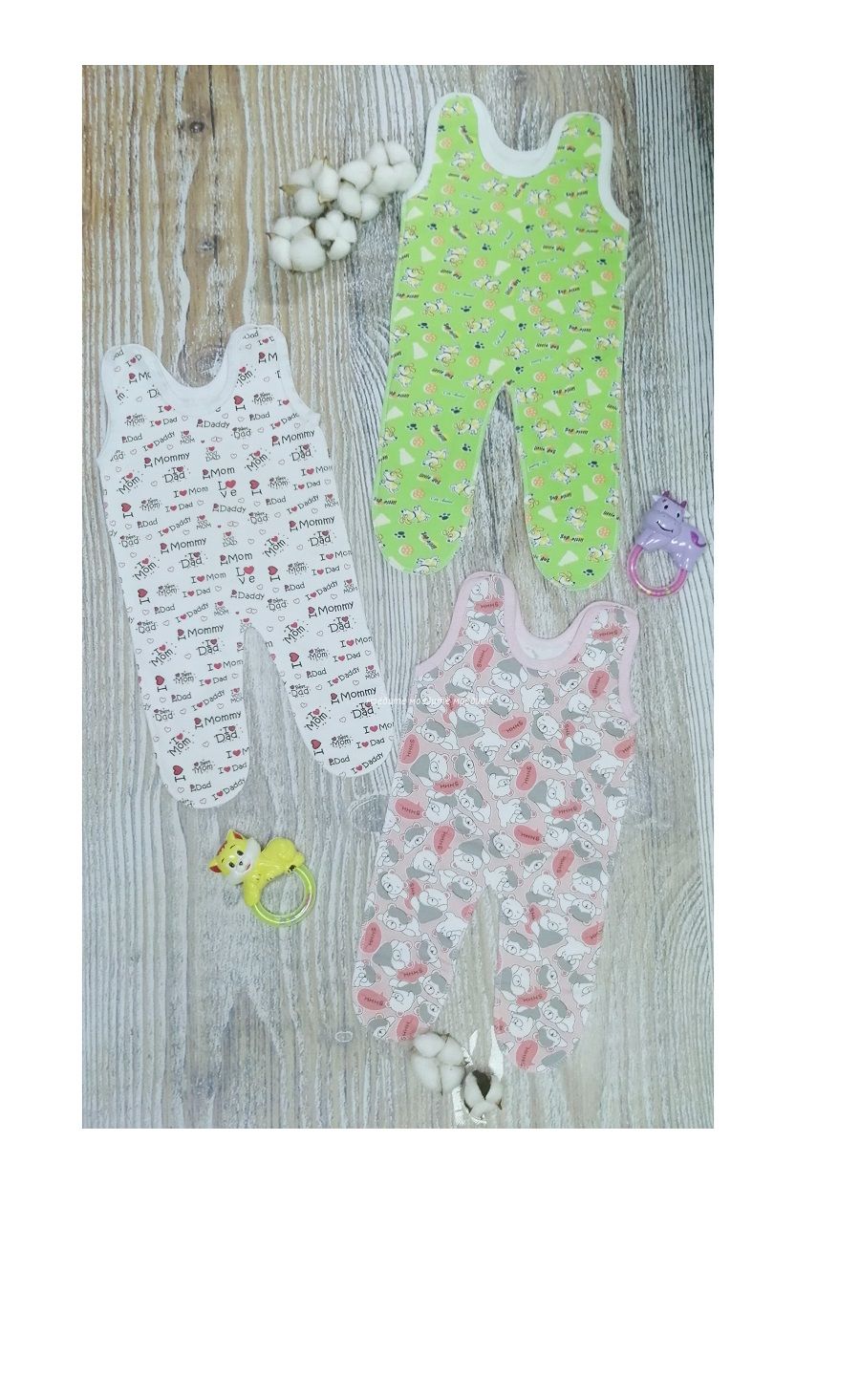 Ползунки с кнопочками на плечиках.  В каждой упаковке и партии расцветки отличаются.