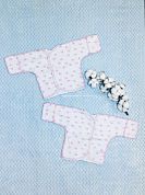 Распашонка выполнена со швами наружу, с рукавчиками-трансформерами, спереди с асимметричной застёжкой на кнопочках.